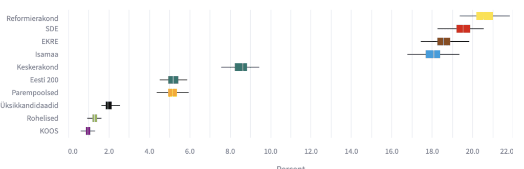 Olukorras, kus nende kolme nimekirja – SDE, RE, Isamaa – toetus võiks olla eri uuringute järgi keskmiselt veapiire arvestades umbes võrdne, oleks kõige tõenäolisem tulemus, et need valimised võidab Reformierakond ja seda mudel neile valimistele meie küsitluse põhjal ka näitab. Arvesse tuleb muidugi võtta, et meie tugineme siin kõigest ühele 855 eelistusega vastaja veebiküsitlusele, nii et absoluutse tõena ei saa kindlasti võtta ka seda. Struktuurne eelis on neil valimistel siiski Reformierakonnal, sest Euroopa Parlamendi valija on lihtsalt kõige rohkem Reformierakonna valija nägu.
